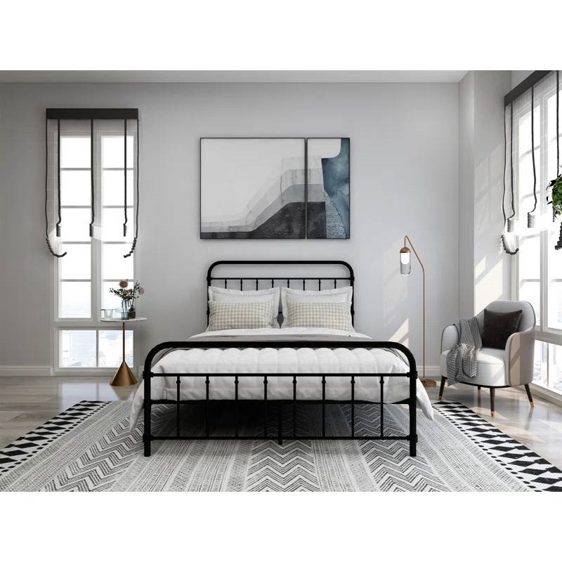 Full size Farmhouse Black Metal Bed Frame with Rounded Headboard Footboard