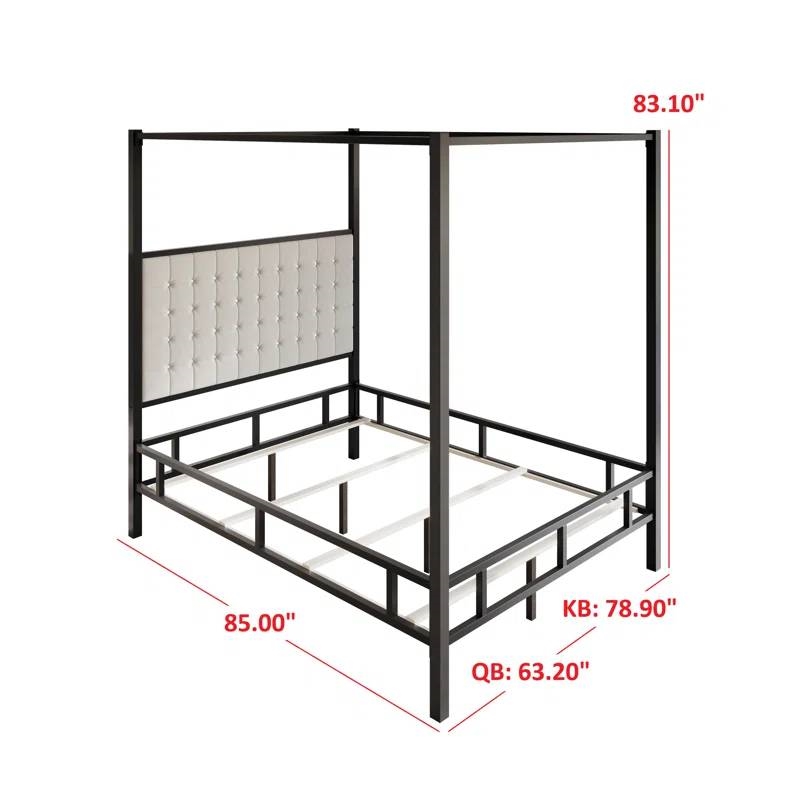 King size Black Metal Canopy Bed with Upholstered Button-Tufted Headboard King size Black Metal Canopy Bed with Upholstered Button-Tufted Headboard King size Black Metal Canopy Bed with Upholstered Button-Tufted Headboard King size Black Metal Canopy Bed with Upholstered Button-Tufted Headboard King size Black Metal Canopy Bed with Upholstered Button-Tufted Headboard